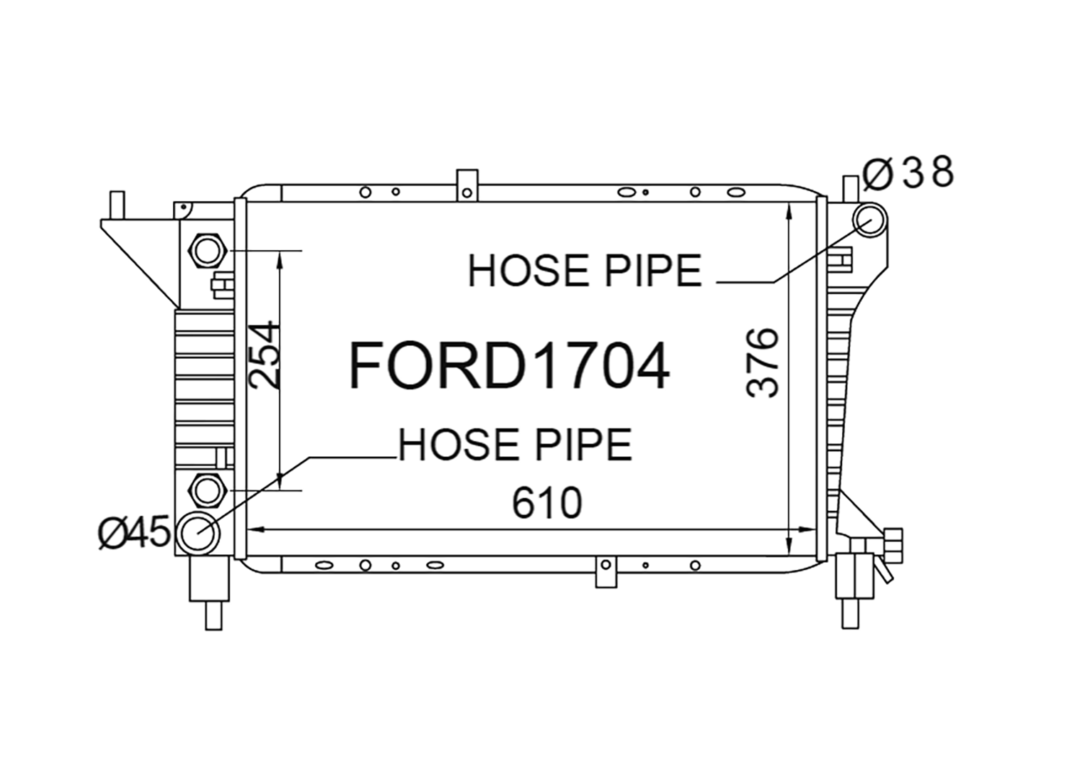 *Core size is tube and fin area only and does not include tanks or plate under tank.