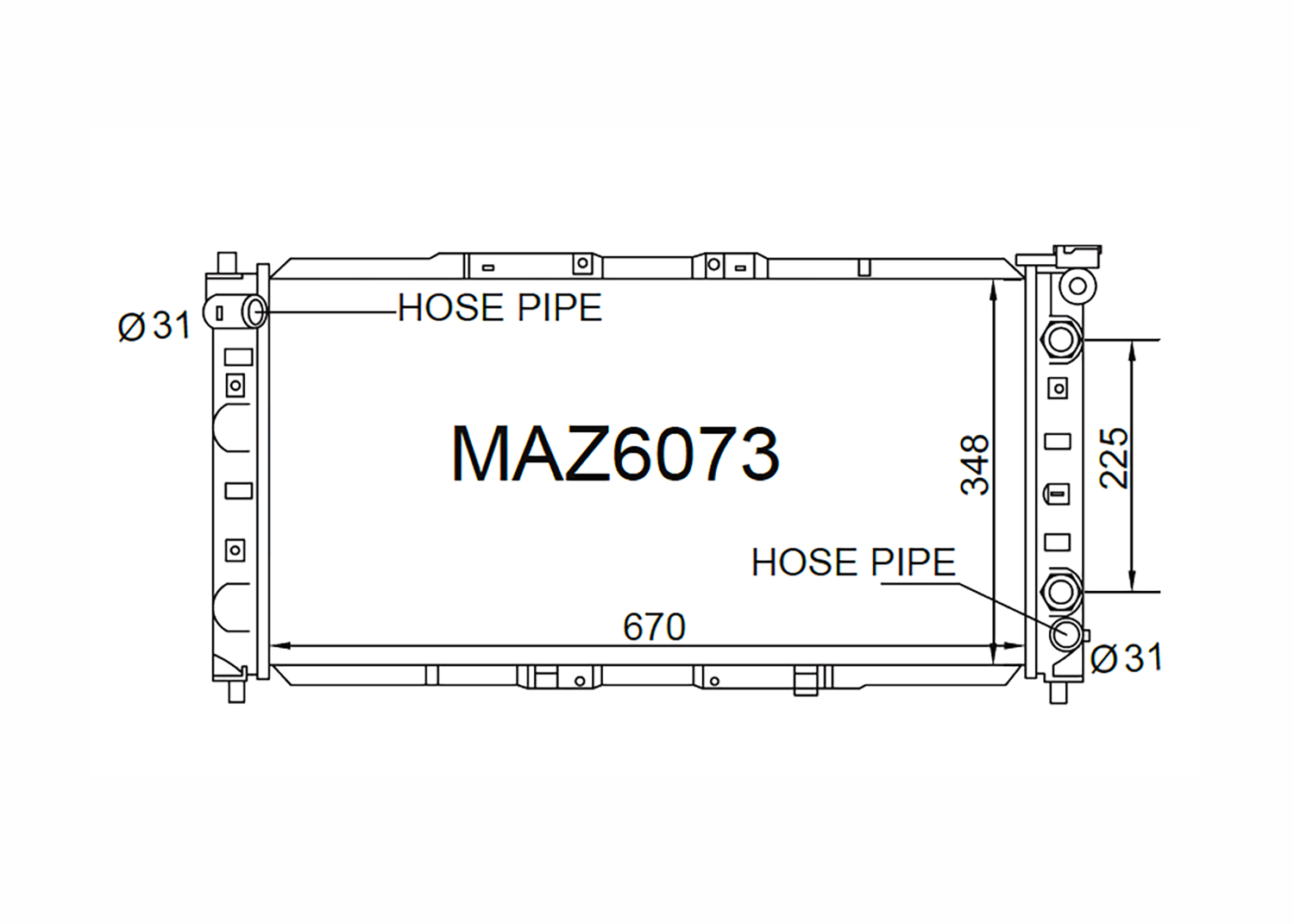*Core size is tube and fin area only and does not include tanks or plate under tank.