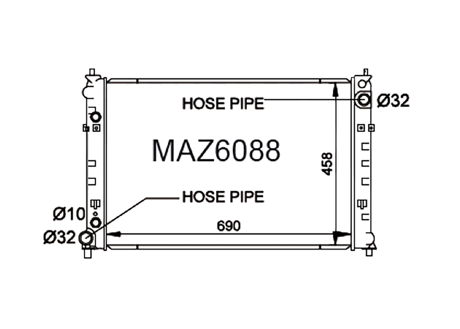 *Core size is tube and fin area only and does not include tanks or plate under tank.