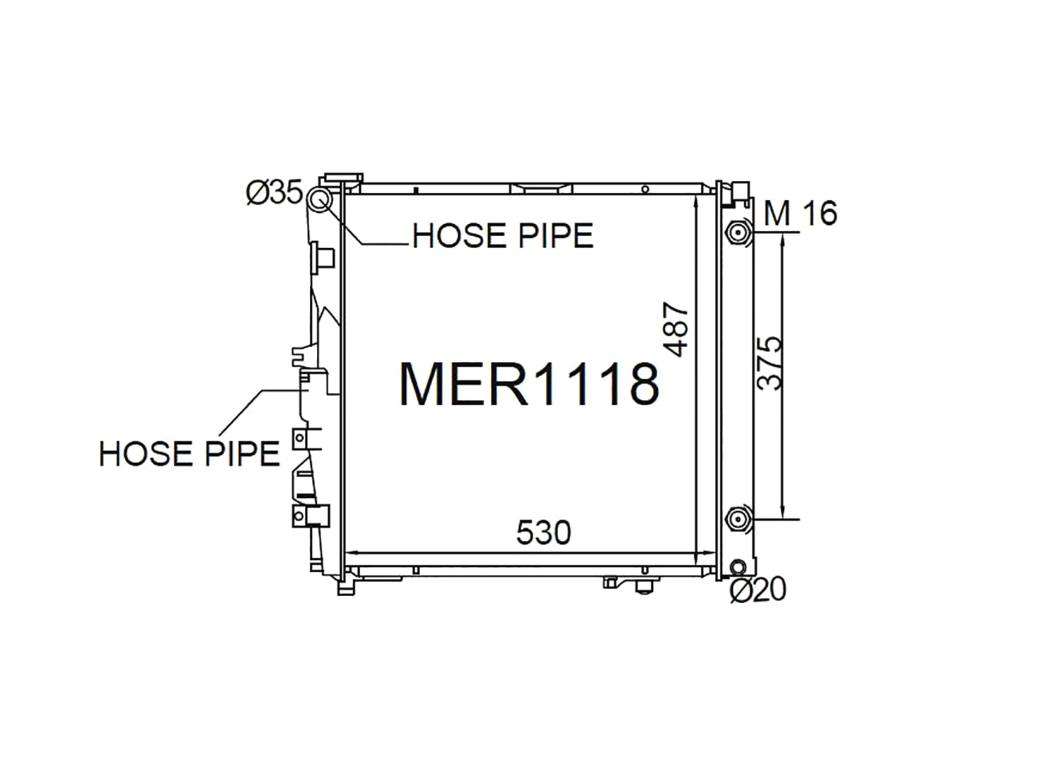 NOTE: This is a multi fit radiator. Includes interchangeable lower hose pipes [straight & angled] to suit petrol or diesel engines.