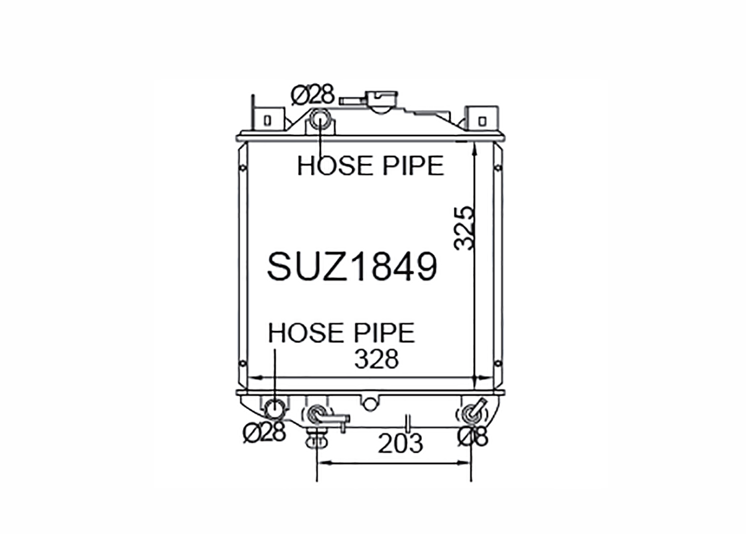 *Core size is tube and fin area only and does not include tanks or plate under tank.